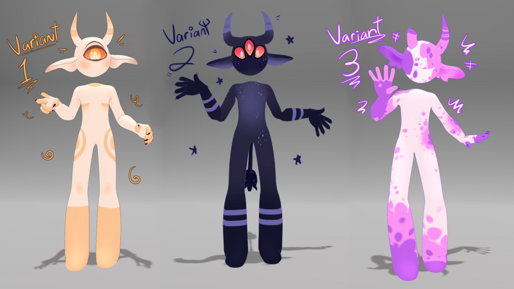 - 3 different head variant FBX's(3 eyes, one eye, one mouth)